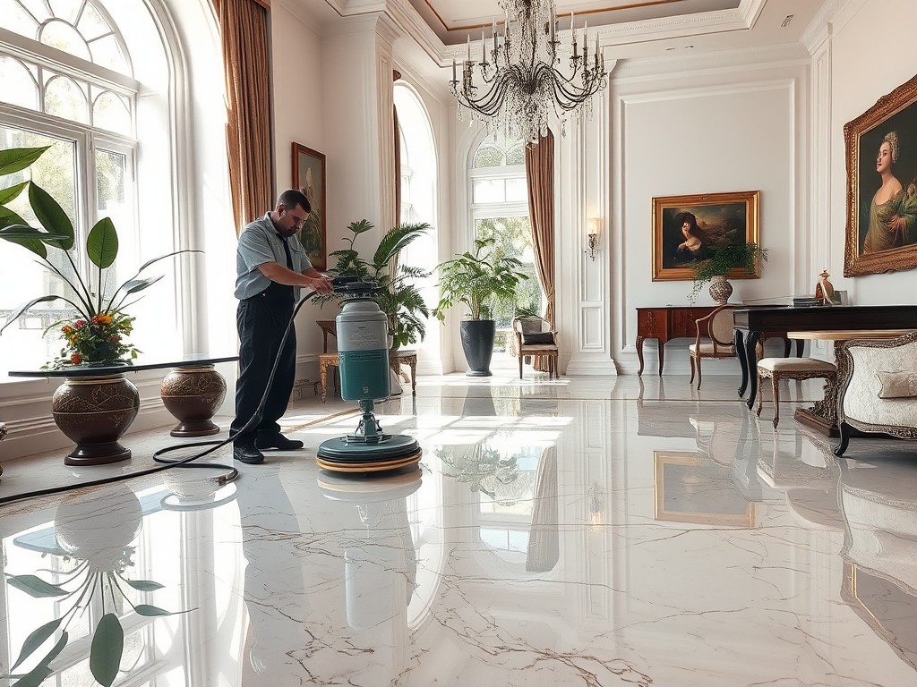 This specialized process enhances marble shine through cleaning, polishing, and applying a crystallizing solution, creating a protective layer against future damage.